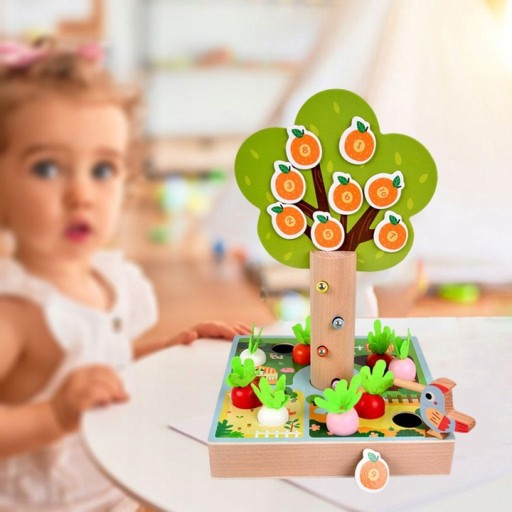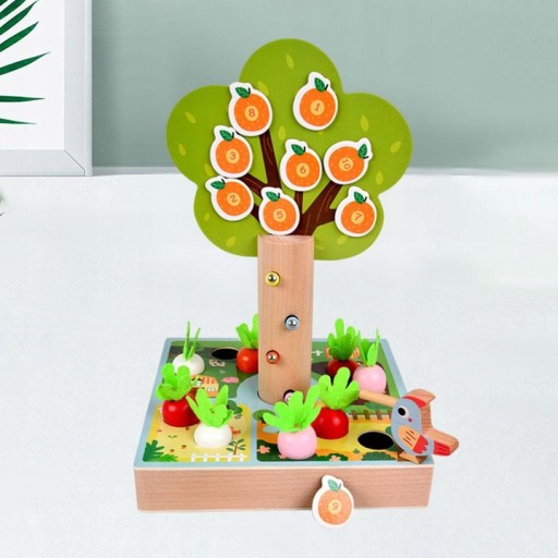 Zabawa polega na wyciągnięciu z drzewa robaków za pomocą zakończonej magnesem figurki dzięcioła.