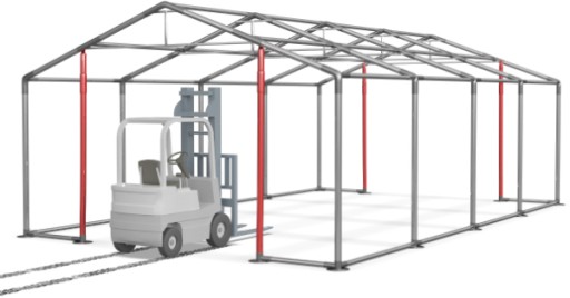 Konstrukcja modułowa pozwala w łatwy sposób zwiększyć lub zmniejszyć wysokość namiotu. Służy do tego dodatkowy zestaw podnoszący w postaci mocnych, stalowych rur o długości 0,5m lub 1m.
