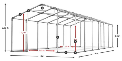 8m x 12m x 2,5/3,96m
