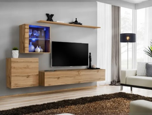 Zestaw mebli wiszący do salonu w stylu loftowym SWIX AM to produkt obok którego nie przejdzie obojętnie żaden miłośnik wnętrz urządzonych z charakterem. Połączenie prostej i atrakcyjnej wizualnie formy z funkcjonalnością doskonale sprawdzi się w różnorodnych aranżacjach.