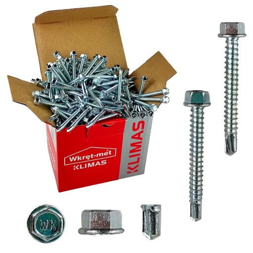 Wkręt samowiercący marki Wkręt-met wykonany w powłoce cynkowej do mocowania blach i obróbek blacharskich do podłoża stalowego, do łączenia blach na zakład.