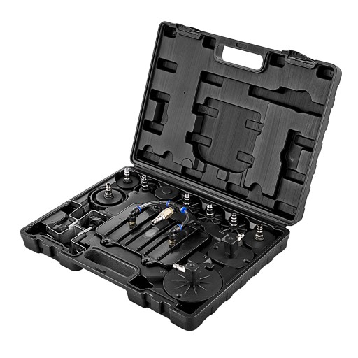 Ten zestaw do odpowietrzania hamulców nadaje się do odpowietrzania układów hamulcowych i sprzęgłowych w pojazdach z ABS, umożliwia jednoosobową obsługę w Twoim warsztacie i nadaje się również do specjalistycznego warsztatu.