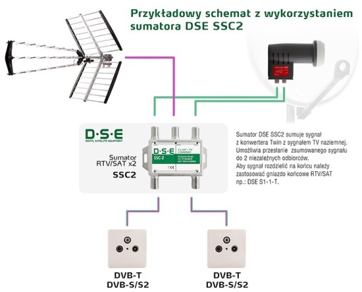 Sumator RTV/SAT 2x DSE SSC2, do TWIN DVB-T TV