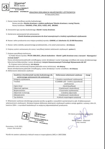 Deklaracja dotyczy tylko i wyłączenie oryginalnych, odpowiednio oznakowanych produktów "GAMAR".