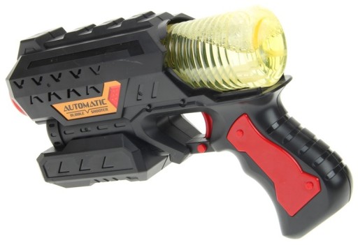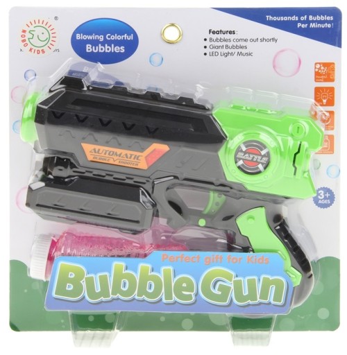 Pistolet do baniek w kształcie broni zachwyci każdego małego fana podbojów wojennych. Pistolet posiada wygodną rączkę, a obsługa jest dziecinnie prosta. Buteleczkę z płynem należy zamontować w magazynku umieszczonym na górze pistoletu. Z każdym kolejnym naciśnięciem spustu można cieszyć się widokiem mieniących się baniek, a efekty dźwiękowo-świetle z pewnością zachwycą najbardziej wymagające dziecko. Pistolet może również pełnić funkcję maszyny do baniek. Wystarczy włączyć blokadę spustu i odstawić pistolet na stabilną powierzchnię. Pistolet świetnie nada się do codziennej zabawy w ogrodzie jak i w domu.