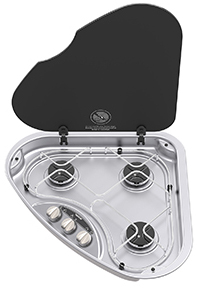 Trójpalnikowa kuchenka gazowa firmy Thetford do zabudowy w kamperach i przyczepach kempingowych wykonana jest z wysokiej jakości materiałów oraz charakteryzuje się eleganckim designem i perfekcyjnym wykonaniem. Czarna pokrywa ze szkła hartowanego po zamknięciu pozwala na stworzenie dodatkowej, użytecznej przestrzeni w naszej kuchni. Pokrywa jest odporna na uszkodzenia dzięki zawiasom umożliwiającym powolne i delikatne zamykanie.