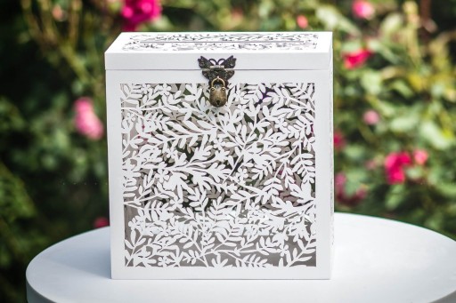 AŻUROWA SKRZYNKA DREWNIANA NA KOPERTY PUDEŁKO ŚLUB WESELE