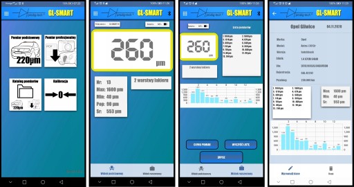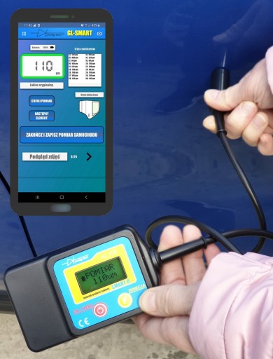 Mierniki grubości lakieru serii SMART umożliwiają połączenie z telefonem za pomocą bluetooth. Dzięki aplikacji GL-SMART otrzymujemy szereg dodatkowych funkcji, które nie są dostępne dla standardowych mierników grubości lakieru.