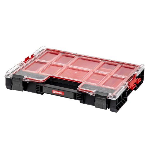 Qbrick System PRO Organizer 200 to średni model z linii PRO. Poza standardowym dla tej linii wyposażeniem, w skład którego wchodzi opatentowany Easy Access System, uszczelka w pokrywie, super wytrzymała poliwęglanowa pokrywa, poliamidowe konektory boczne – oferuje on bardzo wygodną rączkę, poliamidowe zapięcia przednie oraz dodatkowe dwie komory.