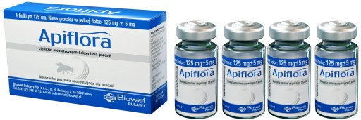 - Apiflora zawiera drobnoustroje stanowiące naturalną florę bakteryjną pszczół, może być więc stosowana niezależnie od innych produktów wspomagających zdrowie pszczół.