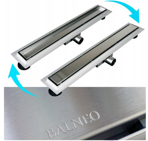 Dwustronny odpływ liniowy DUPLEX NEXT firmy Balneo przeznaczony jest do zabudowy przy użyciu płytek ceramicznych lub marmuru. Doskonale komponuje się z podłogą w kabinie prysznicowej, tworząc harmonijną całość.