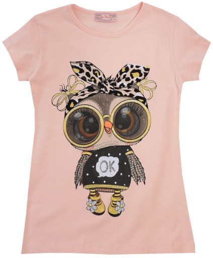 Krój: Bluzeczka z krótkim rękawkiem, na przodzie kolorowy nadruk zdobiony brokatem
