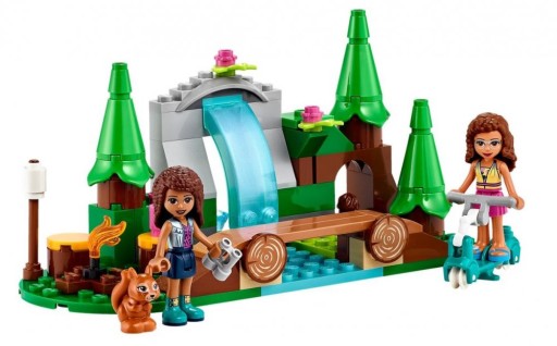 Model zawiera minilaleczki LEGO Friends Andreę i Olivię, figurkę wiewiórki, skuter, ognisko, piankę na patyku, mostek przez rzekę oraz leśny wodospad. Dzieci mogą bawić się w zwiedzanie lasu na skuterze, karmić kasztanem wiewiórkę w jej domku na sośnie, oglądać dzikie stworzenia przez lornetkę i odkrywać klejnot ukryty za wodospadem. Fantastyczny prezent dla miłośników natury w wieku od 5 lat, który pozwoli realizować pasję w domowym zaciszu. To idealny prezent na urodziny, święta i inne okazje.