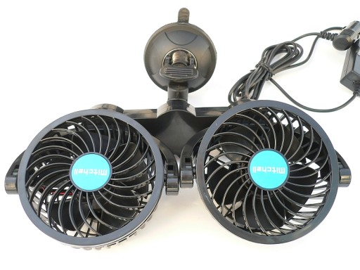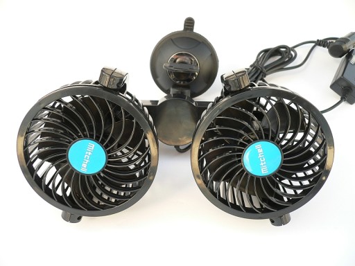Mały, Cichy bardzo wydajny PODWÓJNY wentylator, wiatrak wiatraczek samochodowy 24V - średnica 2 x 4", moc 7W