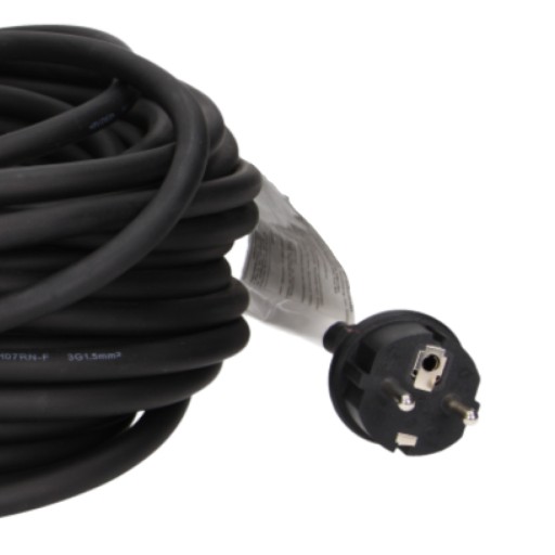 Przedłużacz warsztatowy, o stopniu szczelności IP44. Posiada 1 gniazdo (2P+Z schuko) z plastikową osłoną, która chroni wnętrze gniazda przed dostępem wody i pyłów. Posiada przesłony torów prądowych. Gumowy, olejoodporny kabel z uziemieniem (H07RN-F 3x1,5mm²) ma długość 20m.