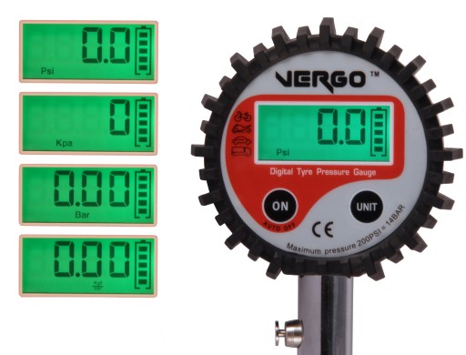 - Zakres pomiarowy 0-200 psi, 0-1380 kPa, 0-13,8 bar i 0- 14,06 kg/cm2
