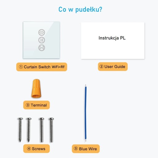 Wbudowany moduł RF umożliwia zdalne sterowanie roletami pilotem, nawet jeśli WiFi nie jest dostępne /brak pilota w zestawie/.
