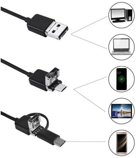Dzięki tak bogatej liczbie złącz, urządzenie otwiera przed nami nowe możliwości korzystania na większości urządzeń. Obraz z endoskopu obejrzysz bowiem zarówno na komputerze, laptopie, telefonie jak i tablecie !
