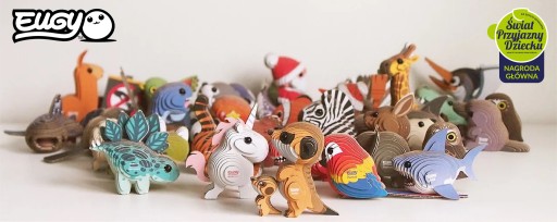 Eugy zaprojektowane w Nowej Zelandii są wykonane z przyjaznego dla środowiska kartonu pochodzącego z recyklingu i farby na bazie ryżu. Zestaw zawiera ponumerowane elementy układanki, nietoksyczny klej oraz instrukcję do złożenia wieloryba. Zbierz całą serię zwierząt, ptaków, dinozaurów i wiele innych. Dla dzieci w wieku 6 lat+.