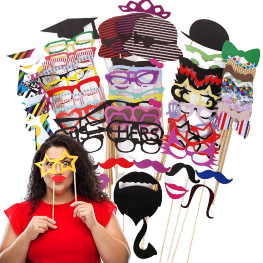 ✅ Po prostu na twarzy: Zestaw składający się z 76 różnych motywów! Można używać ich nie tylko w kabinie fotograficznej, ale również na każdym innym zdjęciu.