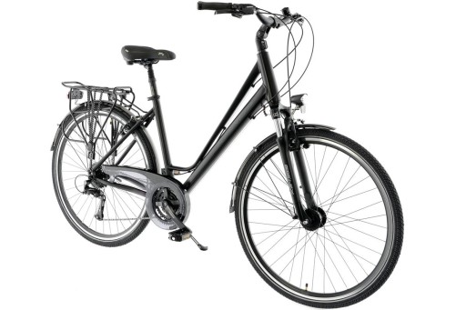 Mocne koła na solidnych, wzmacnianych, aluminiowych obręczach pozwolą pokonywać nawet najtrudniejsze szlaki wraz z ładunkiem. Kompletne wyposażenie roweru w błotniki, osłonę łańcucha, oświetlenie zasilane z prądnicy w pieście oraz bagażnik pozwoli Ci cieszyć się jazda na rowerze w różnych warunkach niezależnie od pogody i pory dnia. Wygodne siodełko, amortyzowany wspornik siodła oraz ergonomiczne chwyty zapewnią Ci wygodę nawet podczas najdłuższych wypraw.
