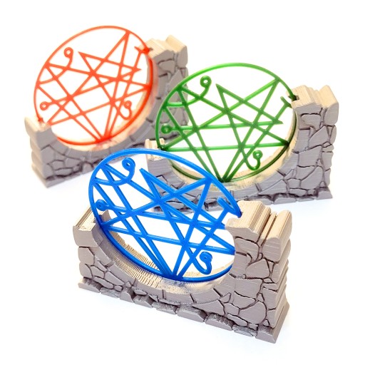 Przedmiot ten nie jest zabawką i nie nadaje się dla małych dzieci. Kolor rzeczywisty może nieznacznie odbiegać od zdjęcia ze względu na indywidualne ustawienia ekranu. Elementy gry (takie jak znaczniki, żetony, karty itp.) nie są elementem oferty. Zestaw wykonany jest w technologii druku 3D. Dzięki użyciu nietoksycznego, biodegradowalnego i przyjaznego środowisku materiału. Przedmiot oferowany to 9 szt. podstawek w kolorze szarym oraz bram w kolorach: niebieski 3 szt., zielony 2 szt., czerwony 4 szt.. Projekt zastrzeżony. Produkt na zamówienie.