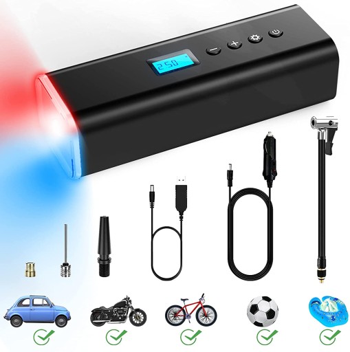 - Ta przenośna pompka elektryczna może być używana do samochodu, opon rowerowych, piłek, kółek do pływania i zabawek.