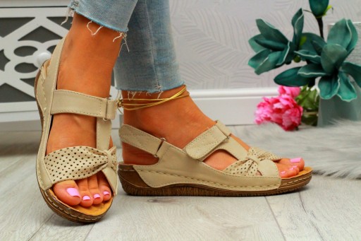 HIT lekkie sandały na niskiej koturnie w kolorze beżowym pasujące do wielu stylizacji !!!!