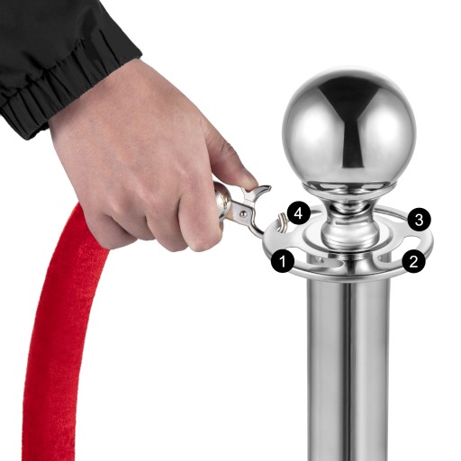 Ten słupek kolejki służy do zarządzania tłumami lub dzielenia miejsca na różne funkcje. Konstrukcja ze stali nierdzewnej i wytrzymałe aksamitne sznurki zapewniają długotrwałe użytkowanie. Solidna podstawa zapewnia stabilność. Jej elegancki i nowoczesny design sprawia, że nadaje się na różne okazje i miejsca, takie jak teatry, restauracje, festiwale filmowe, muzea, imprezy na czerwonym dywanie i tak dalej.