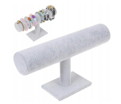 Przedmiotem sprzedaży jest 1 sztuka ekspozytora na biżuterię w postaci wałka na estetycznej, prostokątnej podstawie.