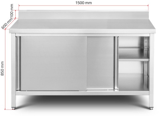 STÓŁ ROBOCZY - SZAFKA NIERDZEWNA ZE STALI NIERDZEWNEJ ZAMYKANA DRZWIAMI PRZESUWNYMI Z REGULOWANĄ PÓŁKĄ W ŚRODKU
