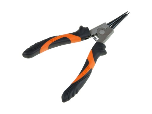 Przedmiotem oferty są szczypce o długości 180mm marki Kendo przeznaczone do zakładania i demontowania pierścieni blokujących, które zabezpieczają części mechaniczne przed przemieszczaniem się.