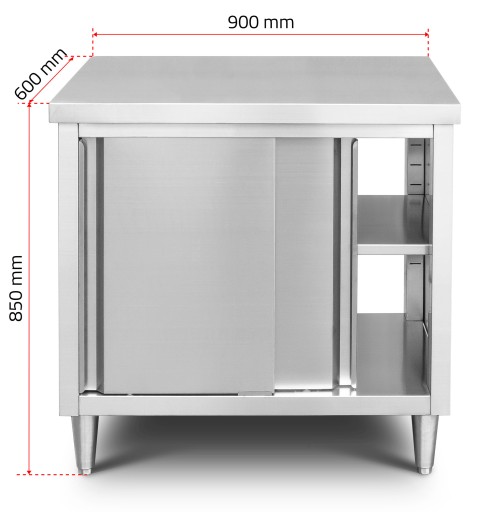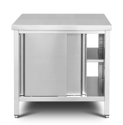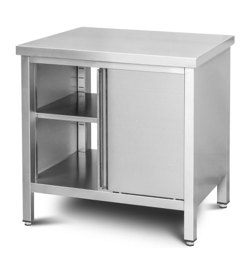 STÓŁ ROBOCZY - SZAFKA NIERDZEWNA ZE STALI KWASOODPORNEJ ZAMYKANA DRZWIAMI PRZESUWNYMI Z PÓŁKĄ W ŚRODKU