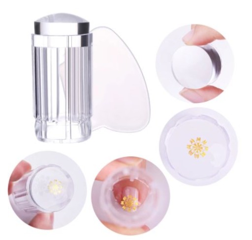 Żelowy element zachowuje się jak miękka poduszka, dzięki czemu doskonale dopasowuje się do płytki i precyzyjnie odbija zdobienie. Stempel posiada na końcu otwór, przez który możemy obserwować, gdzie stemplujemy.