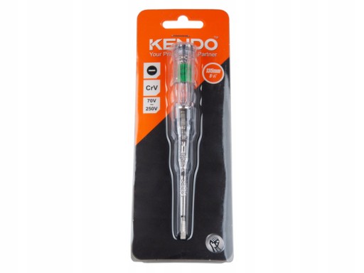 Przedmiotem oferty jest próbnik napięcia marki Kendo. Tester umożliwia sprawdzenie napięcia prądu zmiennego w zakresie od 70-250 V oraz stałego od 70-600 V. Dzięki swojej budowie pozwala w sposób szybki i skuteczny sprawdzić miejsce pęknięcia uszkodzonego przewodu w instalacji elektrycznej czy określić sprawność bezpieczników oraz gniazd.