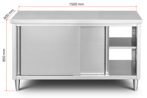 STÓŁ ROBOCZY - SZAFKA NIERDZEWNA ZE STALI KWASOODPORNEJ ZAMYKANA DRZWIAMI PRZESUWNYMI Z PÓŁKĄ W ŚRODKU