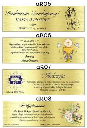 - tabliczka z indywidualną dedykacją, grafiką lub logo