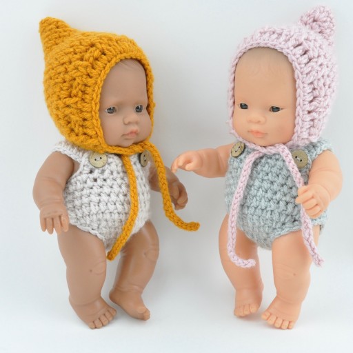 Kombinezon wykonany szydełkiem specjalnie dla lalek Miniland.