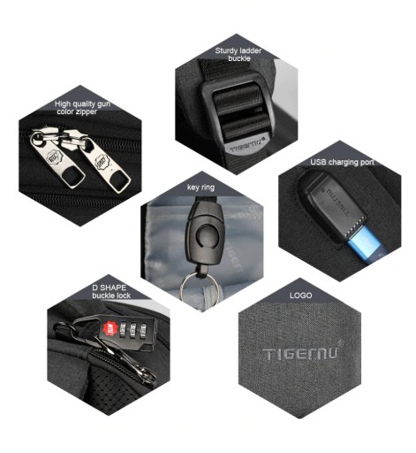 Galeria produktu Tigernu Plecak Tigernu na laptopa 18" T-B3905 ochrona RFID i USB