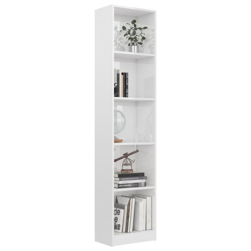 5-poziomowy regał, wysoki połysk, biały, 40 x 24 x 175 cm
