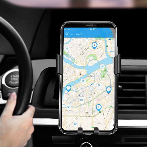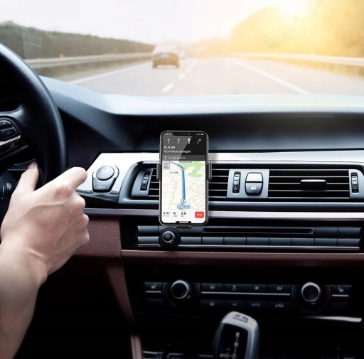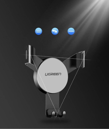 Grawitacyjny uchwyt samochodowy do zamontowania na kratce wentylacyjnej auta. Gadżet jest niezwykle prosty w obsłudze, wystarczy odłożyć na niego telefon, a szczęki zamkną się automatycznie. Posiada trójkątną konstrukcję zapewniającą stabilność podczas jazdy, duże możliwości regulacji (w tym obrotu o 360 stopni) oraz gumowe nakładki, dzięki którym nie porysujemy nawiewu. Do tego specjalne wycięcie, które umożliwia podłączenie ładowarki.