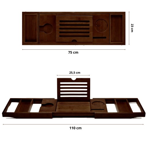 ➡️ Półka pasuje do wanien o szerokości w zakresie od 75cm do 110cm, a przy tym nie zajmuje dużo miejsca.