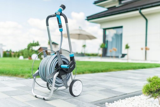 Konstrukcja wózka umożliwia wygodne przewożenie długich odcinków węża, co jest ogromnym udogodnieniem podczas prac wykonywanych w przydomowym ogrodzie. Pozwala tym samym zaoszczędzić czas pracy oraz odciążyć stawy i mięśnie użytkownika.