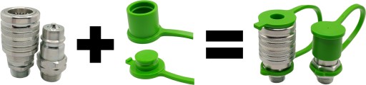 Komplet szybkozłącza hydraulicznego ISO-A 12,5 M16x1,5 10L (wtyczka+gniazdo) z pokrywą w kolorze zielonym!