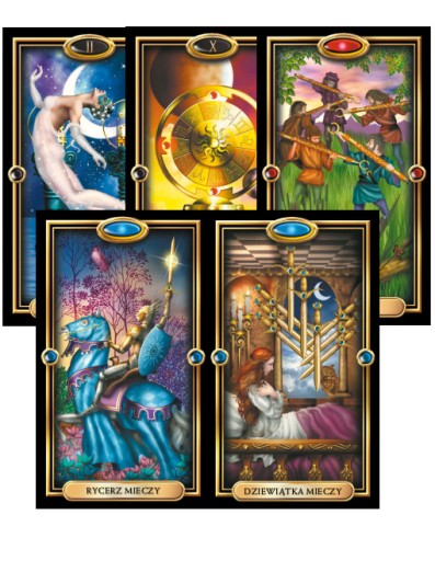 Mity, baśnie i legendy od wielu wieków są ważnym, ponadczasowym elementem magicznego królestwa wyobraźni, znajdującego się gdzieś pomiędzy fantazją a rzeczywistością. Pozłacany Tarot zachęca do zbadania tego zaczarowanego świata, gdzie odwieczne symbole i archetypy znajdują swe ucieleśnienie w postaciach jasnowłosych dziewic, odważnych rycerzy i obdarzonych mądrością mistyków.Uhonorowany wieloma nagrodami artysta – Ciro Marchetti – do tworzenia tego wizjonerskiego tarota użył nowatorskich, cyfrowych technik plastycznych. Czerpiąc inspirację z najbardziej znanych i najczęściej stosowanych kart Rider-Waite, wykorzystując ich popularną symbolikę i strukturę, stworzył współczesne, pełne życia obrazy tarota.Towarzyszący kartom przewodnik stanowi instrukcję ułatwiającą ich odczytywanie. Dowiesz się wszystkiego, co jest ważne do dokonania ich dogłębnej interpretacji. Niech magiczne karty Pozłacanego Tarota przeniosą Cię w świat magii i cudów!