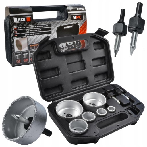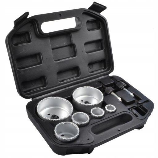 Zestaw otwornic wolframowych z adapterami przeznaczony do robienia otworów w twardych materiałach takich jak: