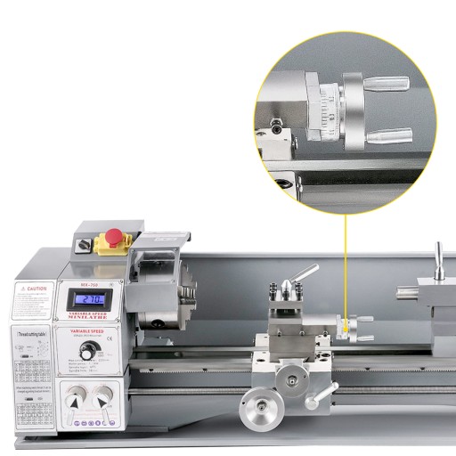 Mini tokarka posiada 3-szczękowy uchwyt i otwór wrzeciona 1,5"/38mm. Jest szeroko stosowana tam, gdzie wymagana jest precyzyjna obróbka. 4-kierunkowy słupek rewolwerowy na tokarce jest łatwy w regulacji. narzędzia.