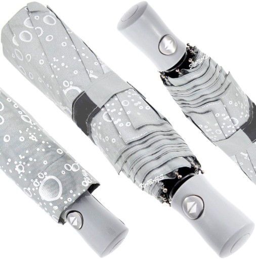 Posiada elegancki dobrze widoczny przycisk który po naciśnięciu powoduje, że parasol się rozkłada przy kolejnym wciśnięciu czasza parasola jest składana czyli pełny automat