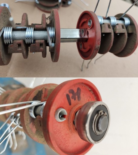 Najprostsza metoda to usunięcie starej zaprasowanej tulejki (np. przecinając ją w połowie długości) i zastąpieniu jej nową ( dostępne na moich aukcjach- koszt 1 szt/1 zł na komplet potrzeba 10/12szt ), ponieważ tulejka jest odrobinę grubsza należy otwór poszerzyć wiertłem fi 8,5 lub tulejkę lekko ścisnąć w imadle, zakładamy nowe sprężynki.