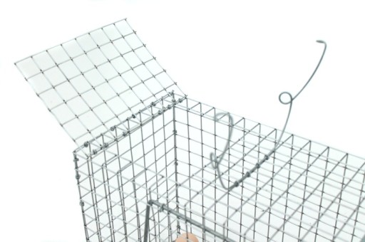 Pułapka posiada klapkę rewizyjną na środku - która służy do zakładania zanęty - to bardzo ważne by nie sięgać ręką w głąb pułapki ! W większości pułapek na rynku klapka rewizyjna to najsłabszy punkt - silny zwierz może wyrwać słabo zabezpieczona klapkę.